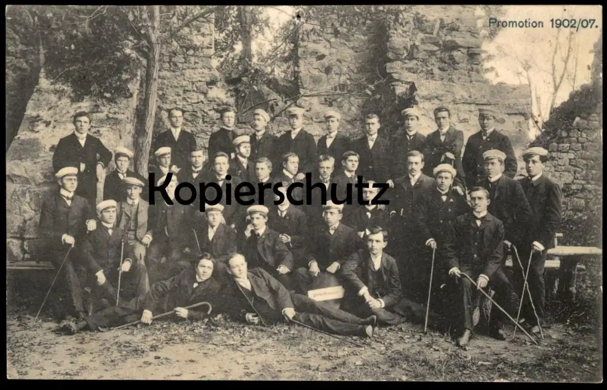 ALTE POSTKARTE PROMOTION 1902/07 STUDENTEN STUDENTICA BURG BURGRUINE Verlag: Fotograf C. Hollaender, Nagold