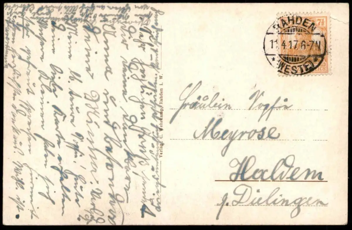 Gelaufen: 11.04.1917 mit Stempel Rahden nach Haldem bei DielingenErhaltung (s. Scan): gut, linke obere Ecke minimal bestoßen / 916698