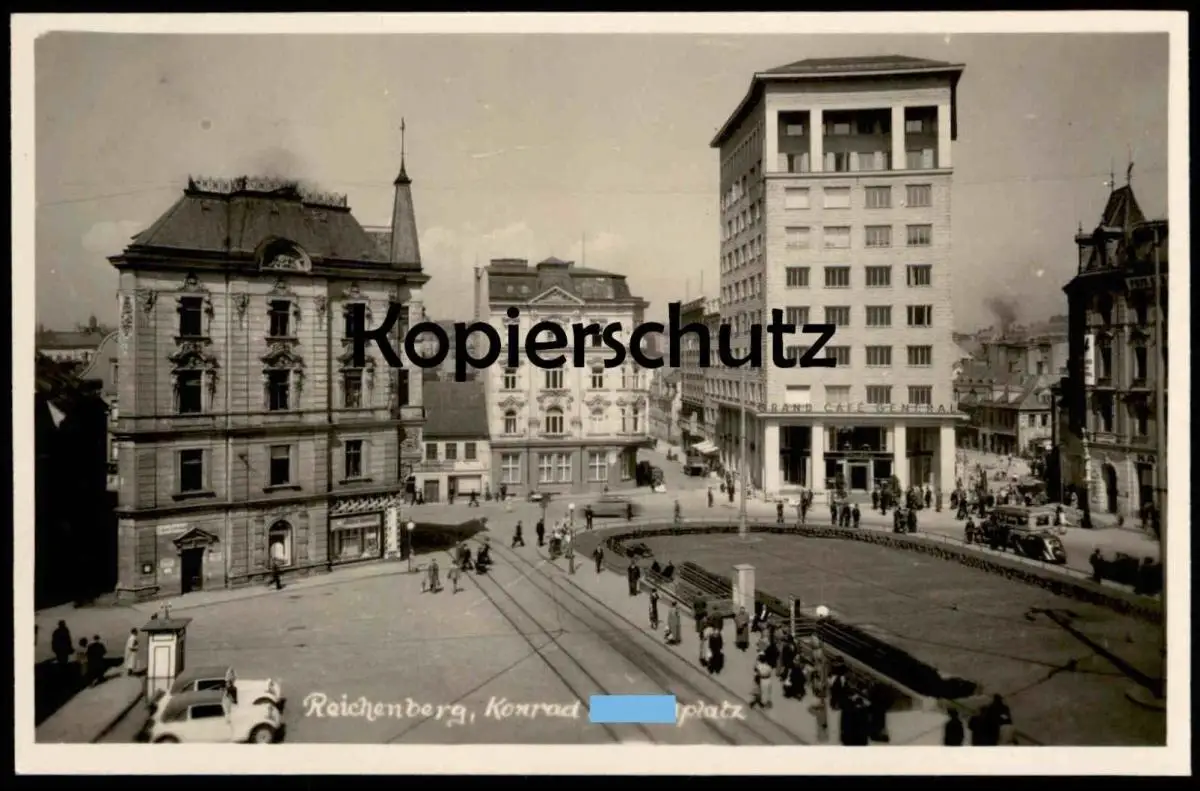 ALTE POSTKARTE REICHENBERG KONRAD H. PLATZ GRAND CAFÉ MARX LIBEREC Sudeten Email General Michel Nr.684 AK postcard