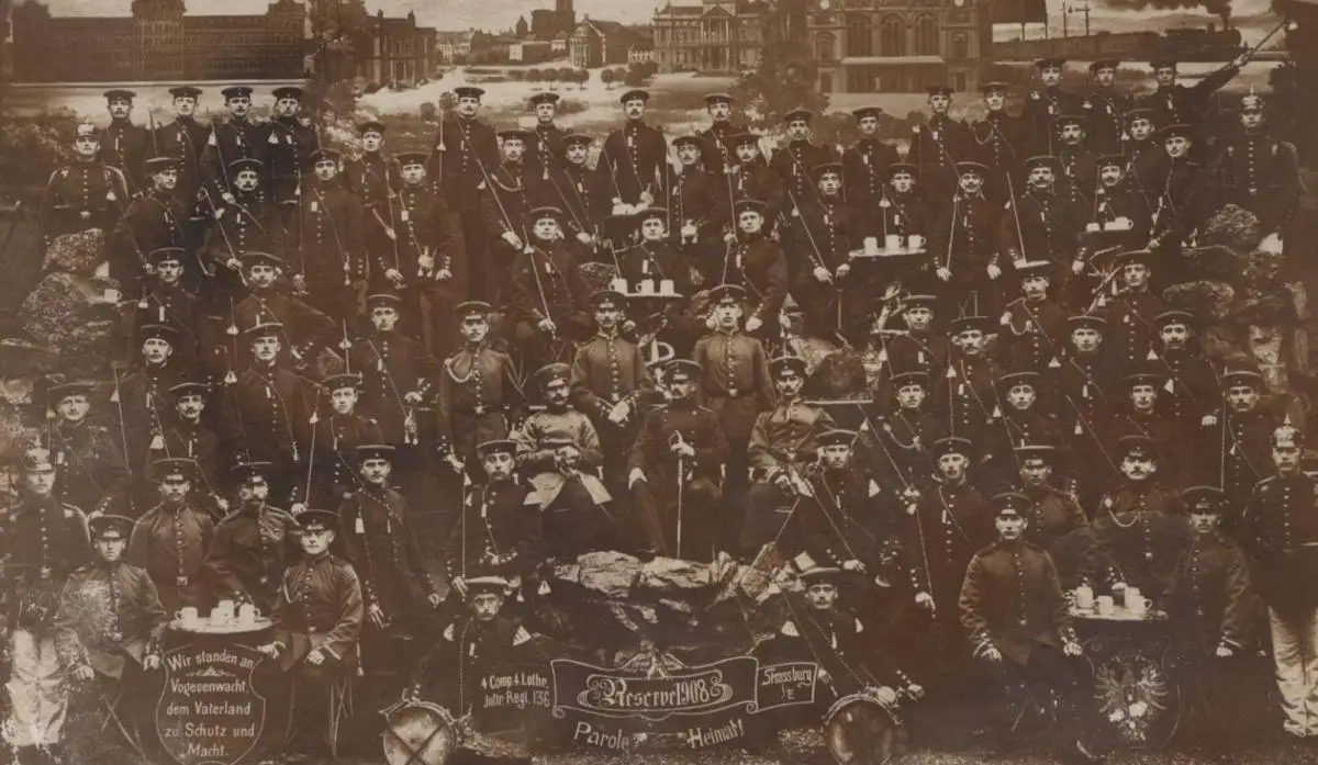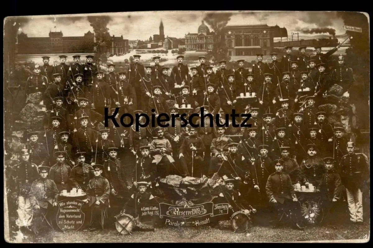 ALTE POSTKARTE RESERVE 1908 STRASSBURG PAROLE HEIMAT 4. COMP. 4. LOTHR. INFTR. RGT. 136 WIR STANDEN AN VOGESENWACHT DEM VATERLAND ZU SCHUTZ UND MACHT NACH DER HEIMATVerlag: Max Kaempf, Strassburg