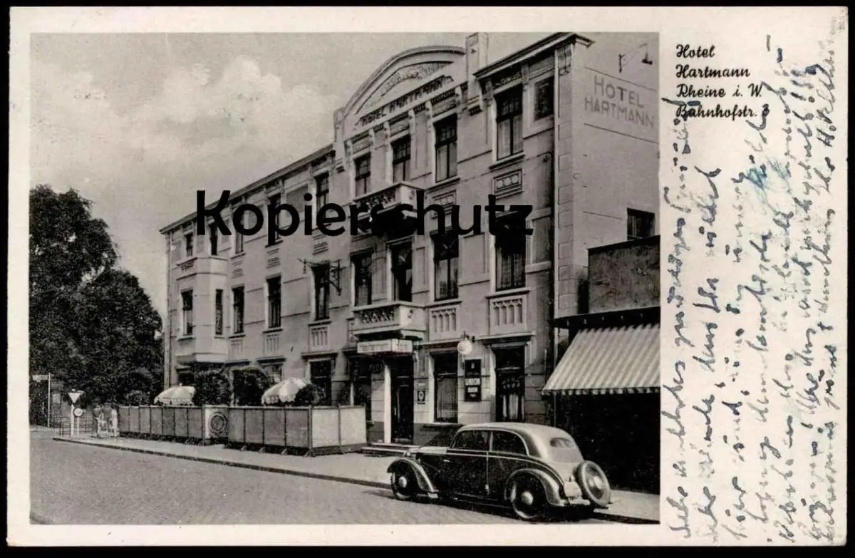 ALTE POSTKARTE RHEINE HOTEL HARTMANN BAHNHOFSTRASSE Auto Voiture Reklame Blechschild Union Bier Ansichtskarte AK cpa