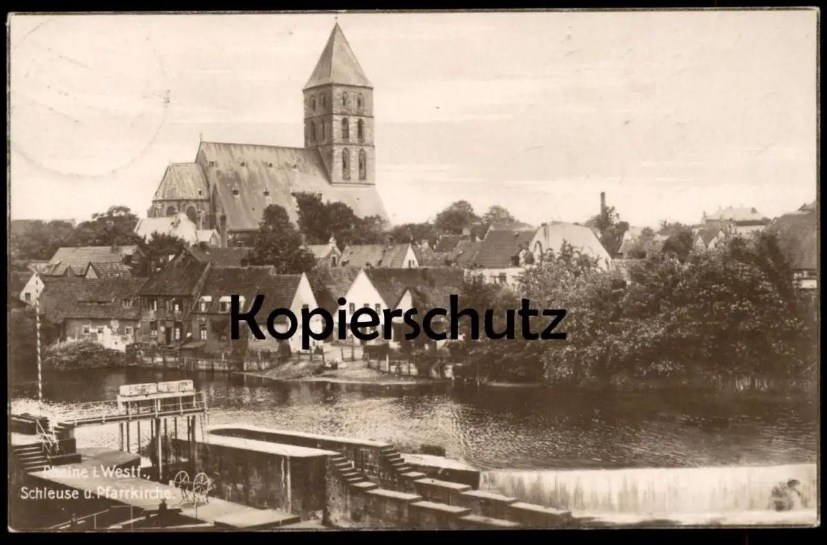 ALTE POSTKARTE RHEINE IN WESTFALEN SCHLEUSE UND PFARRKIRCHE