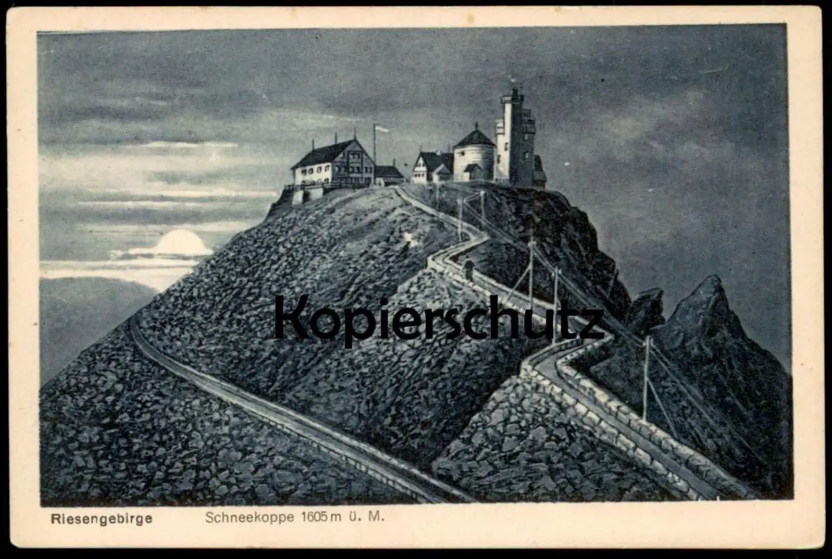 ALTE POSTKARTE RIESENGEBIRGE SCHNEEKOPPE SCHLESIERHAUS UND RIESENBAUDE Schlesien Ansichtskarte AK postcard cpa