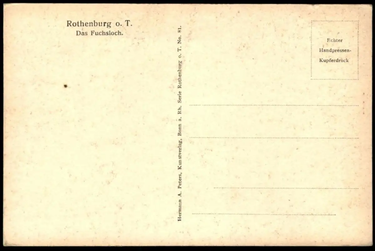ALTE POSTKARTE ROTHENBURG OB DER TAUBER DAS FUCHSLOCHVerlag: Hermann A. Peters, BonnGelaufen: neinErhaltung (s. Scan): gut / 915566