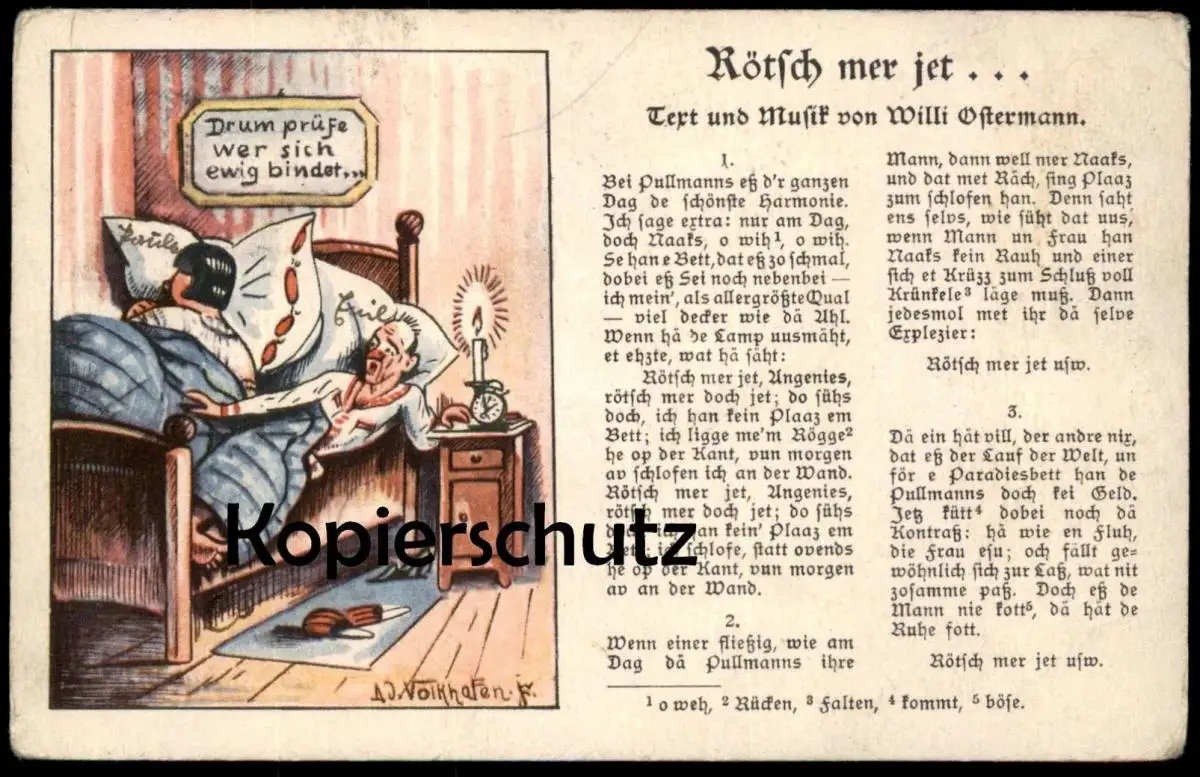 ALTE POSTKARTE RÖTSCH MER JET... EHE EHEBETT KÖLNER LIEDART KÖLN WILLI OSTERMANN sign. Völkhafen Ansichtskarte postcard