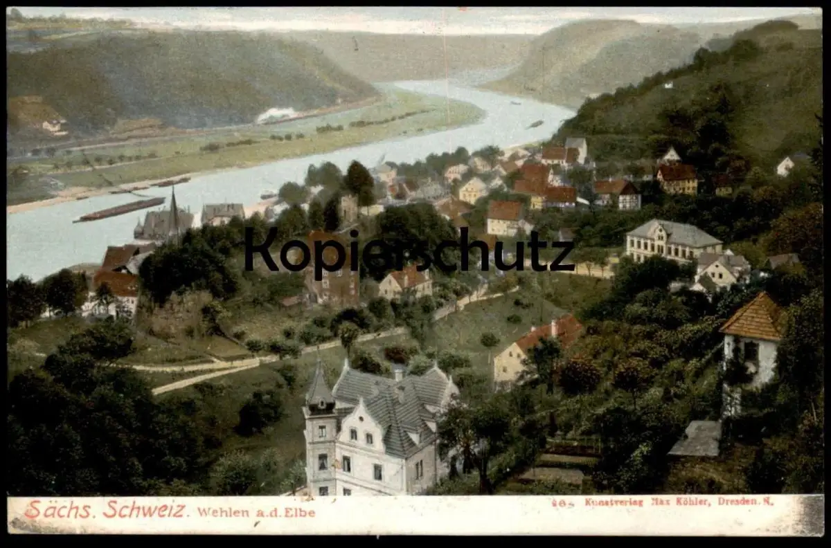 ALTE POSTKARTE SÄCHSISCHE SCHWEIZ WEHLEN AN DER ELBE PANORAMAVerlag: Max Köhler, Dresden