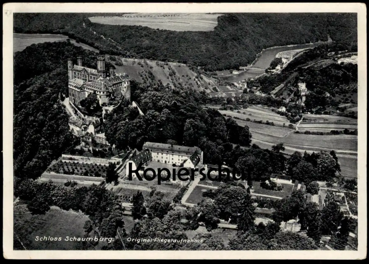 ALTE POSTKARTE SCHLOSS SCHAUMBURG ORIGINAL-FLIEGERAUFAHME BALDUINSTEIN DIEZ AN DER LAHN WALDECKER HOF INHABER WILLY NOLL HOTEL UND SOMMERFRISCHEVerlag: Freigegeben durch R.L.M.; Heiff & Stein GbmH, Leipzig