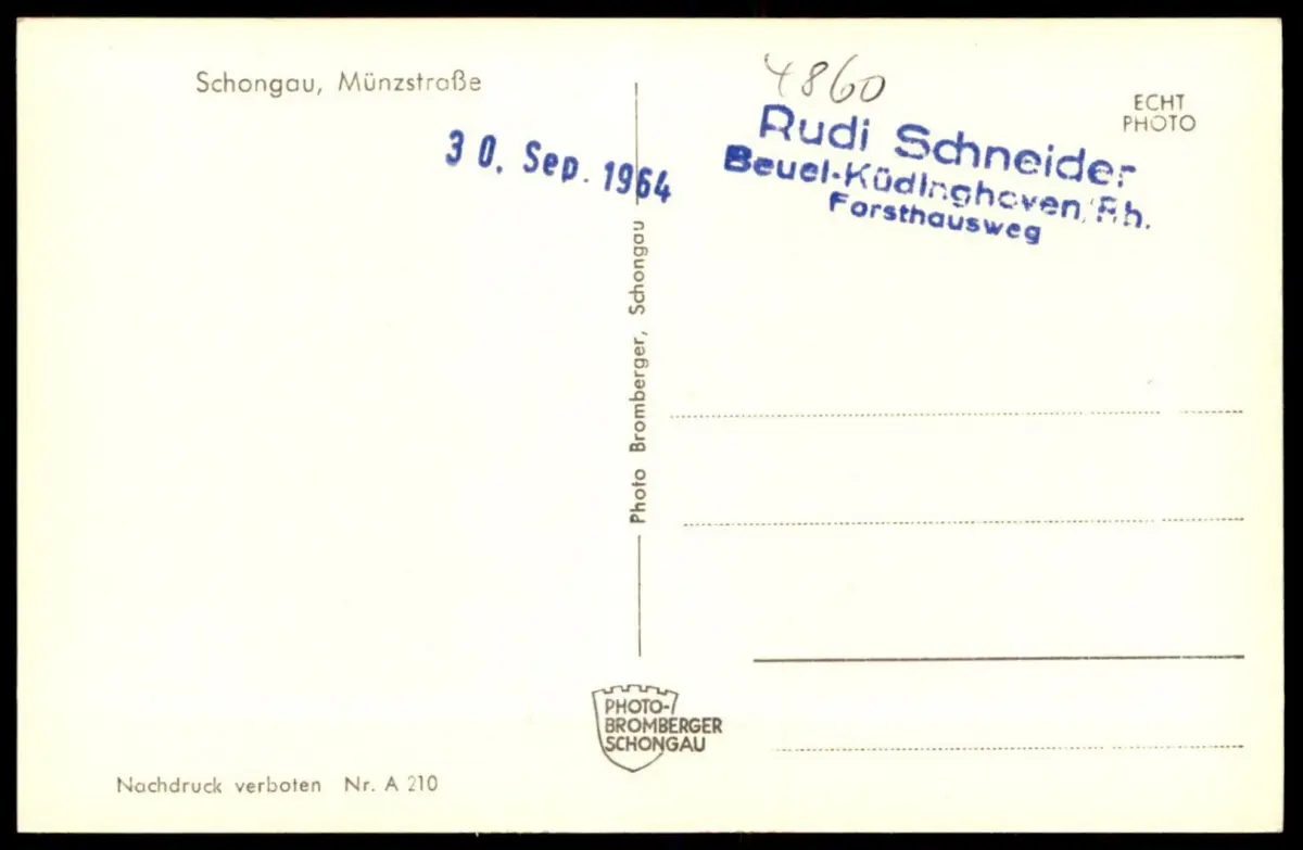 ALTE POSTKARTE SCHONGAU MÜNZSTRASSE DREI VW KÄFER VOLKSWAGEN BREZELKÄFER