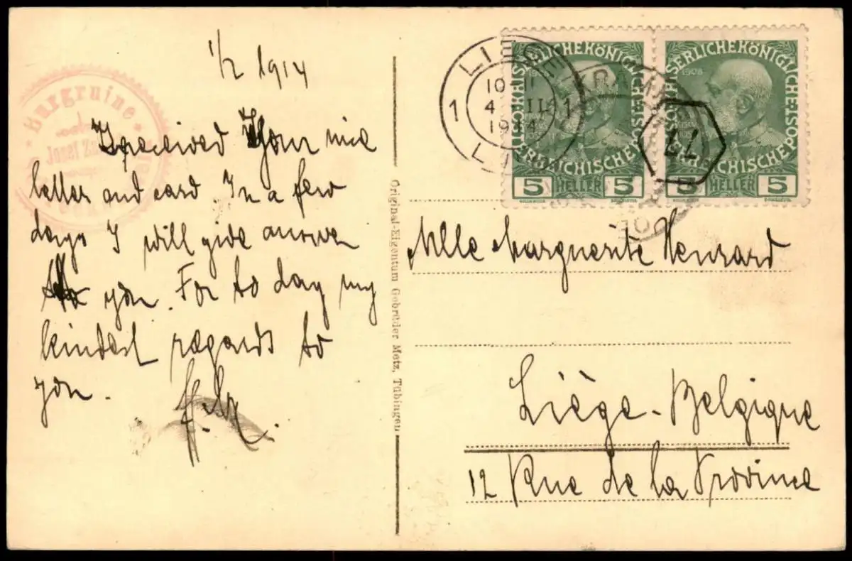Gelaufen: 01.02.1914 mit Stempel Krammel nach Liège Erhaltung (s. Scan): gut - sehr gut / 918803