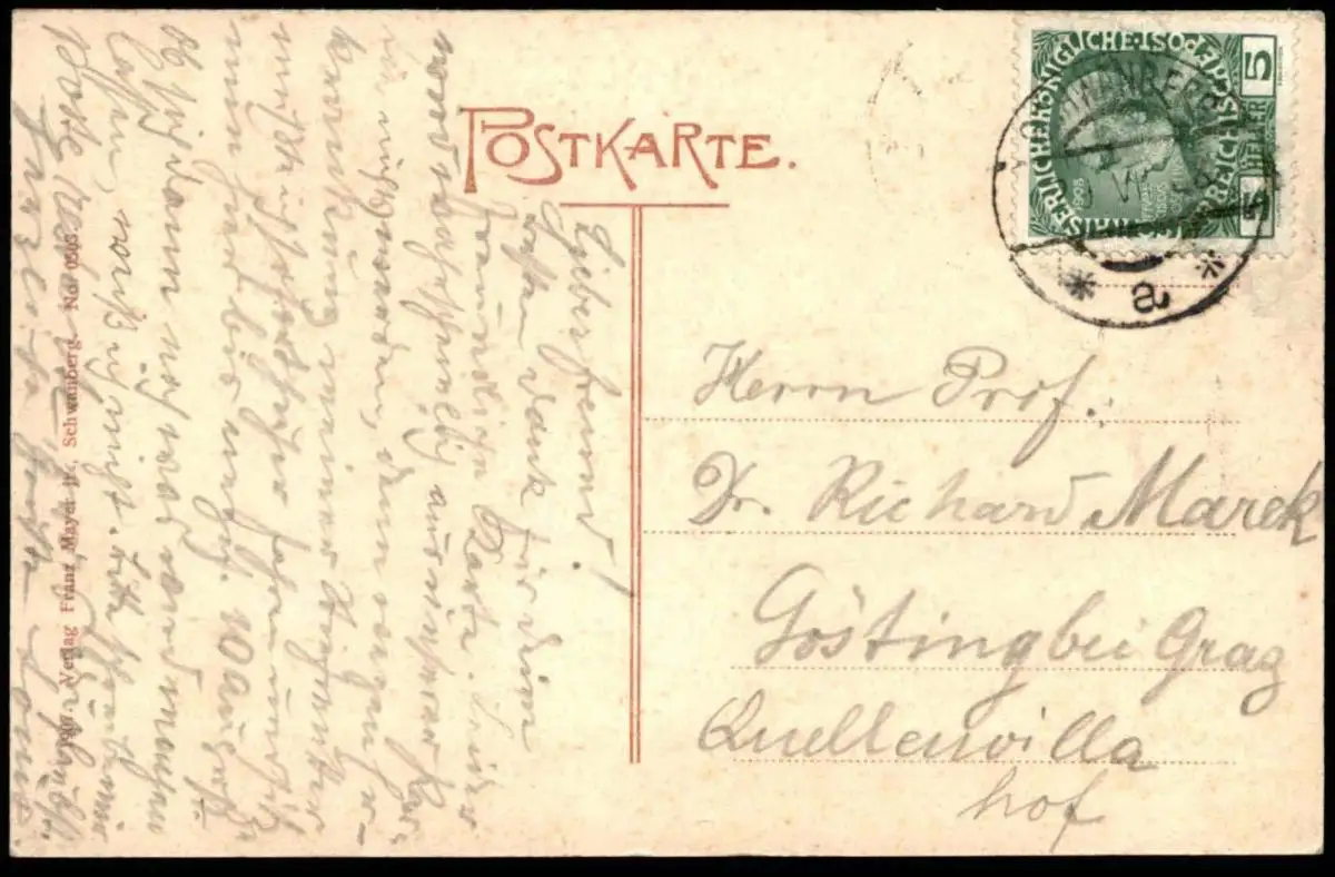 Gelaufen: 29.07.1908 mit Stempel Schwanberg nach Gösting bei Graz