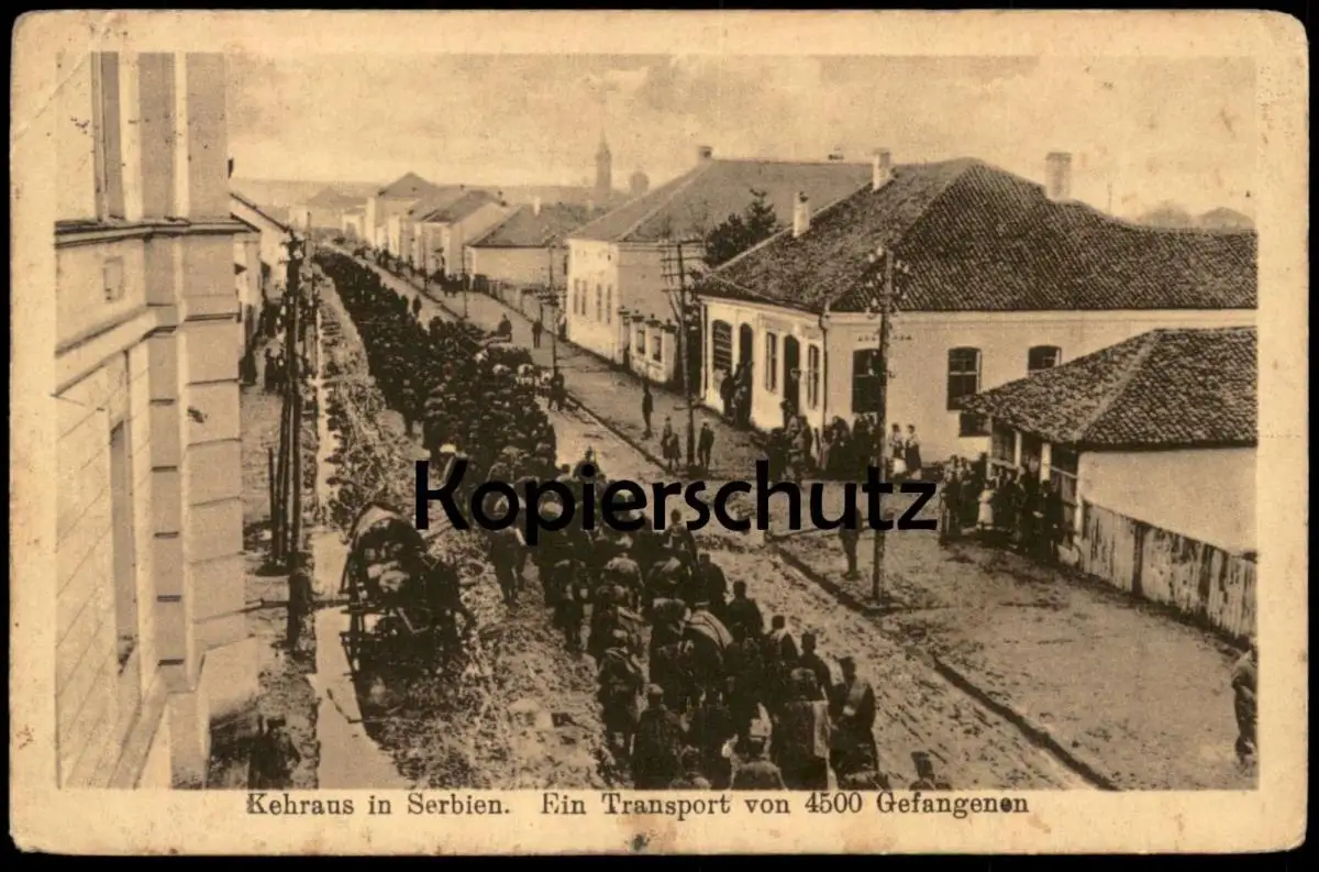 ALTE POSTKARTE SERBIEN TRANSPORT VON 4500 GEFANGENEN MILITÄR WELTKRIEG STEMPEL PIONIERZEUGSDEPOT Serbia Serbie postcard