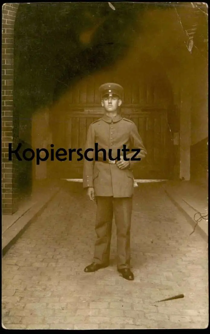 ALTE POSTKARTE SOLDAT IN UNIFORM VOR EINEM TOR VERM. WIESBADEN VERLAG HASSMANN WIESBADEN Ansichtskarte cpa postcard AK