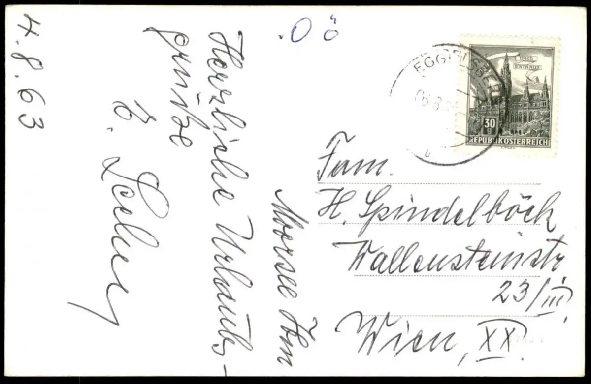 Gelaufen: 05.08.1963 mit Stempel Eggelsberg nach Wien