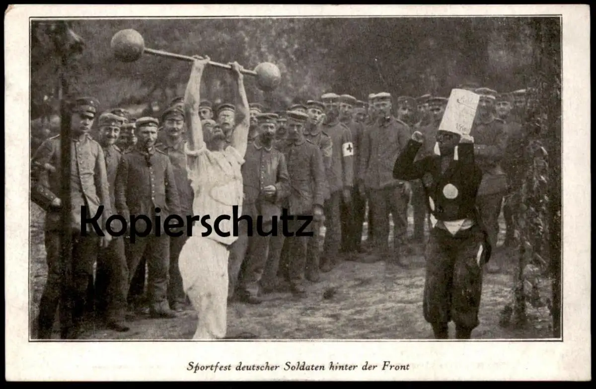 ALTE POSTKARTE SPORTFEST DEUTSCHER SOLDATEN HINTER DER FRONT GEWICHTHEBEN SPORT weightlifting haltérophilie cpa postcard