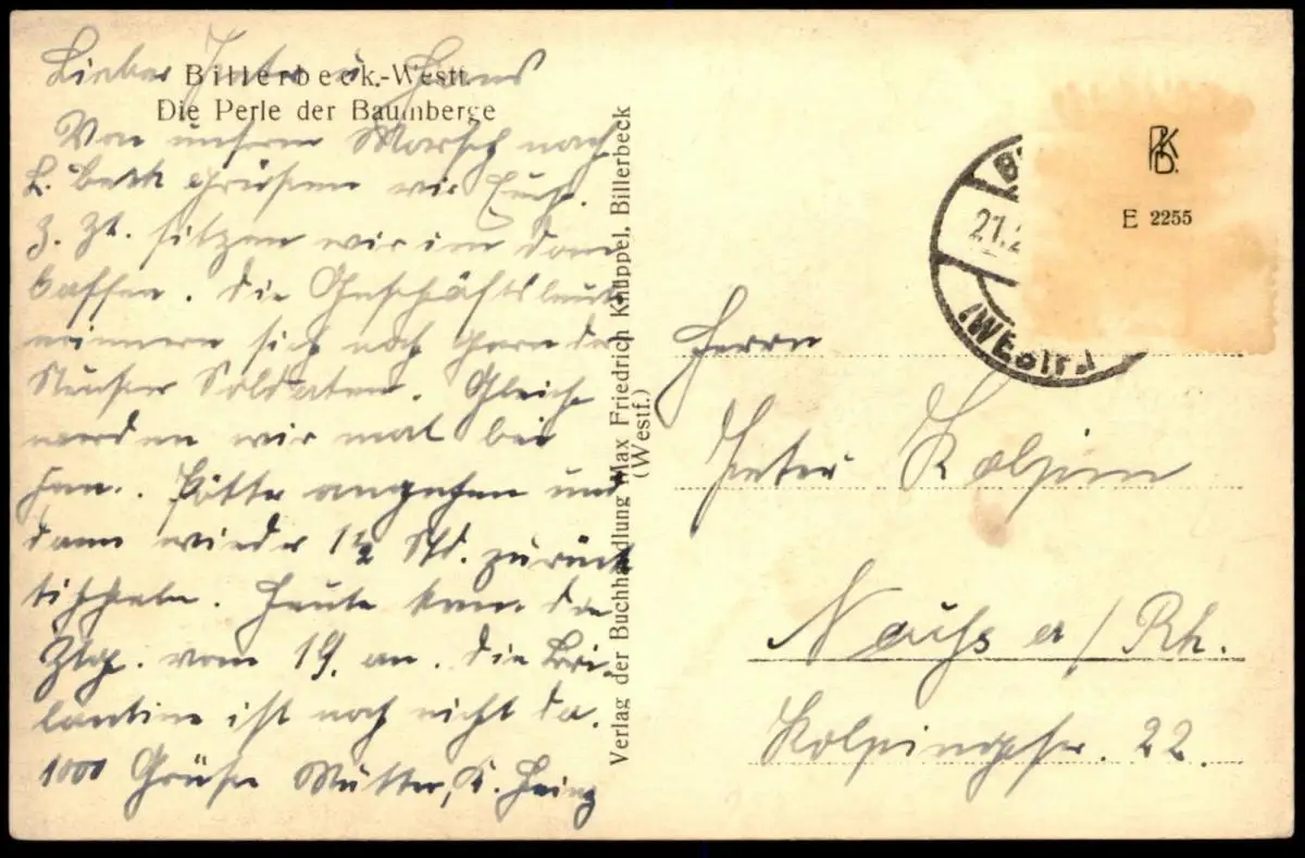 Gelaufen: 21.02.19xx mit Stempel Billerbeck nach Neuss