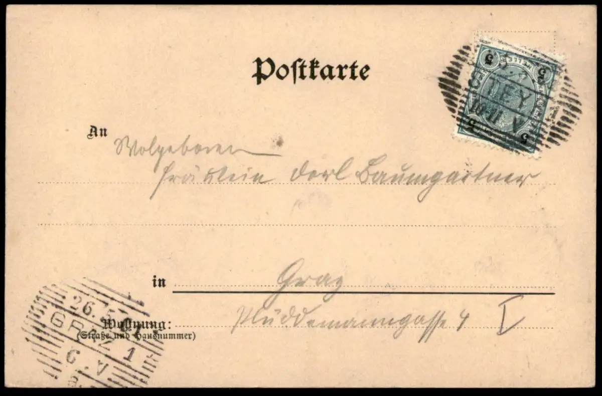 Gelaufen: 25.05.1901 mit Stempel Steyr sowie Ankunftsstempel Graz 1 26.05.1901