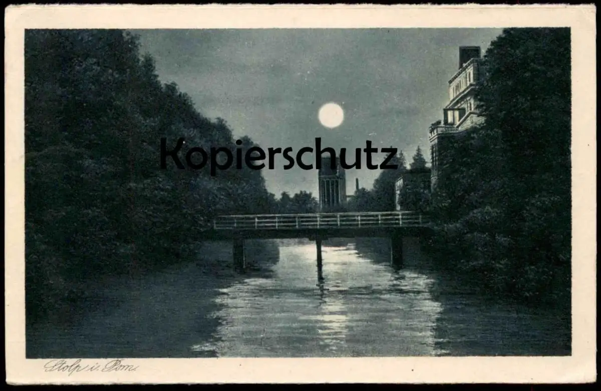 ALTE POSTKARTE STOLP IN POMMERN MONDSCHEIN MOND SLUPSK Polen Polska Ansichtskarte AK cpa postcard