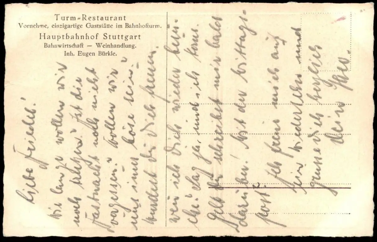 ALTE POSTKARTE STUTTGART BAHNHOFTURM RESTAURANT VORNEHME EINZIGSARTIGE GASTSTÄTTE INH. EUGEN BÜRKLE