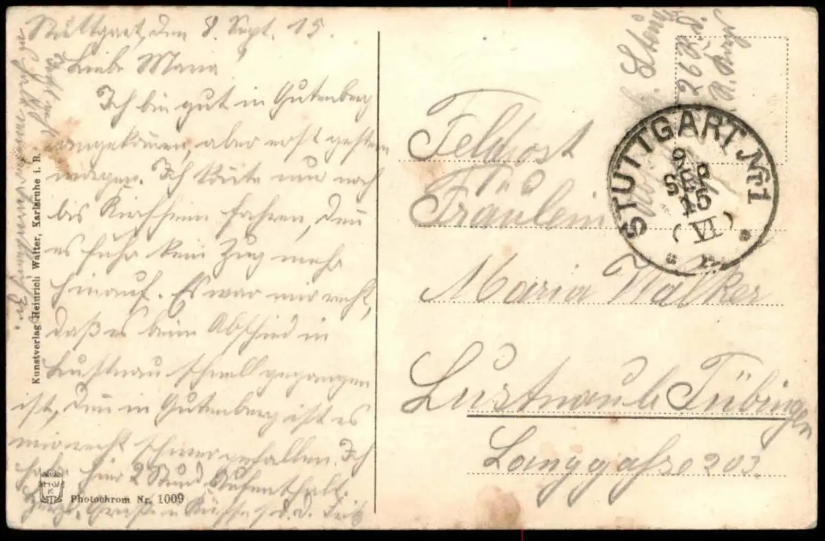 Gelaufen: 09.09.1915 mit Stempel Stuttgart nach Lustnau bei TübingenErhaltung (s. Scan): gut, Stempelabdruck sehr stark / 916068