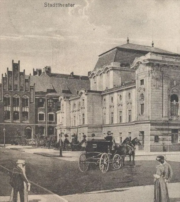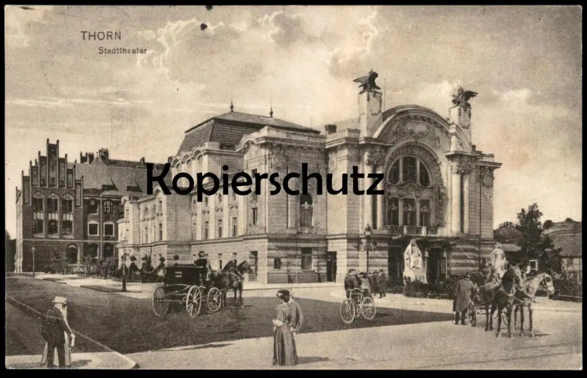ALTE POSTKARTE THORN STADTTHEATER Kutsche Carriage Coche Theater Theatre Torun Ostpreussen Polska Polen Poland bike Rad