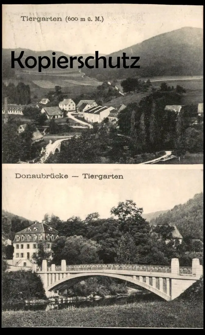 ALTE POSTKARTE TIERGARTEN 600 m ü. M. DONAUBRÜCKEVerlag: Metz, Tübingen