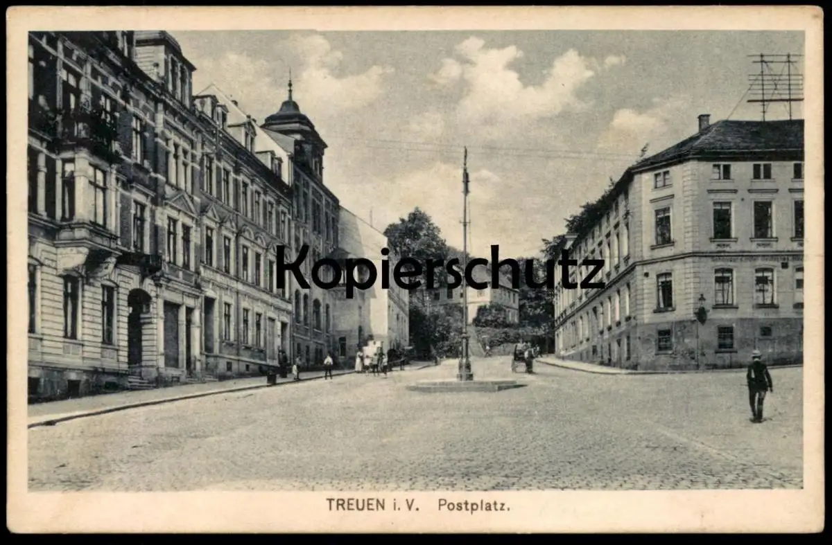 ALTE POSTKARTE TREUEN IM VOGTLAND POSTPLATZ SCHÖNIGER HOTEL DEUTSCHES HAUS SACHSEN cpa postcard AK Ansichtskarte