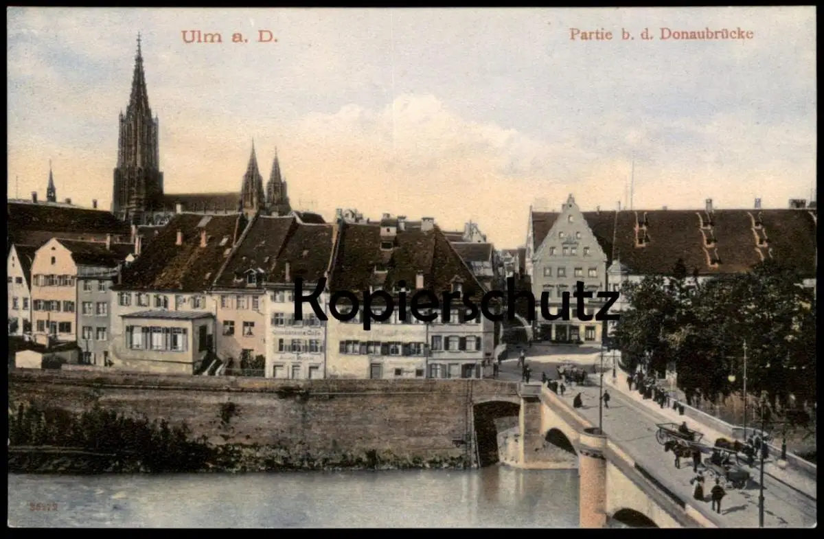 ALTE POSTKARTE ULM PARTIE BEI DER DONAUBRÜCKE PANORAMAVerlag: Metz, Tübingen 1905