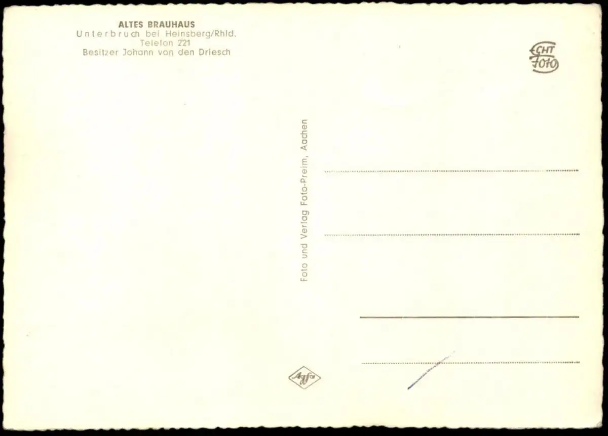 ALTE POSTKARTE UNTERBRUCH HEINSBERG ALTES BRAUHAUS GESAMTANSICHT DES ALTEN BRAUHAUSES INNENANSICHT JOHANN VON DEN DRIESCH