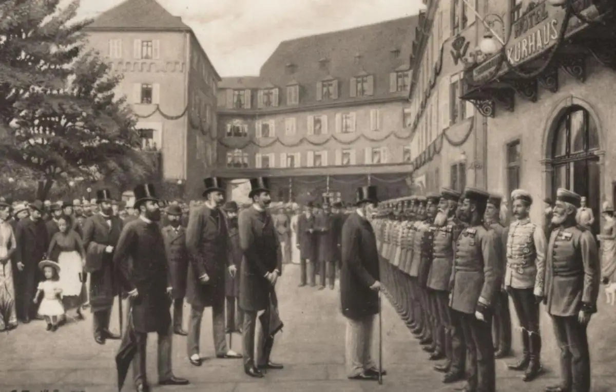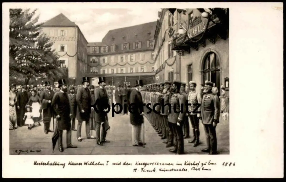 ALTE POSTKARTE UNTERHALTUNG KAISER WILHELM I. IM KAISERHOF BAD EMS H. JANIK Ansichtskarte cpa postcard AK