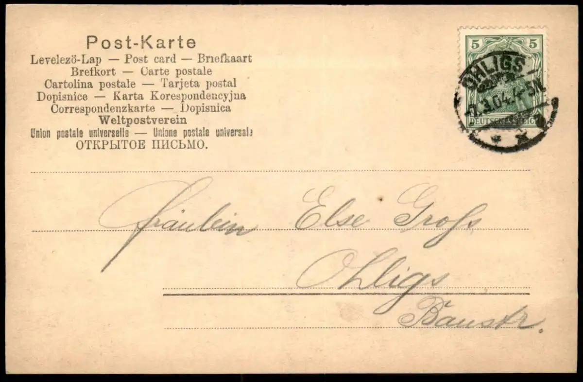 Gelaufen: 07.03.1904 mit Stempel Ohligs nach Ohligs
