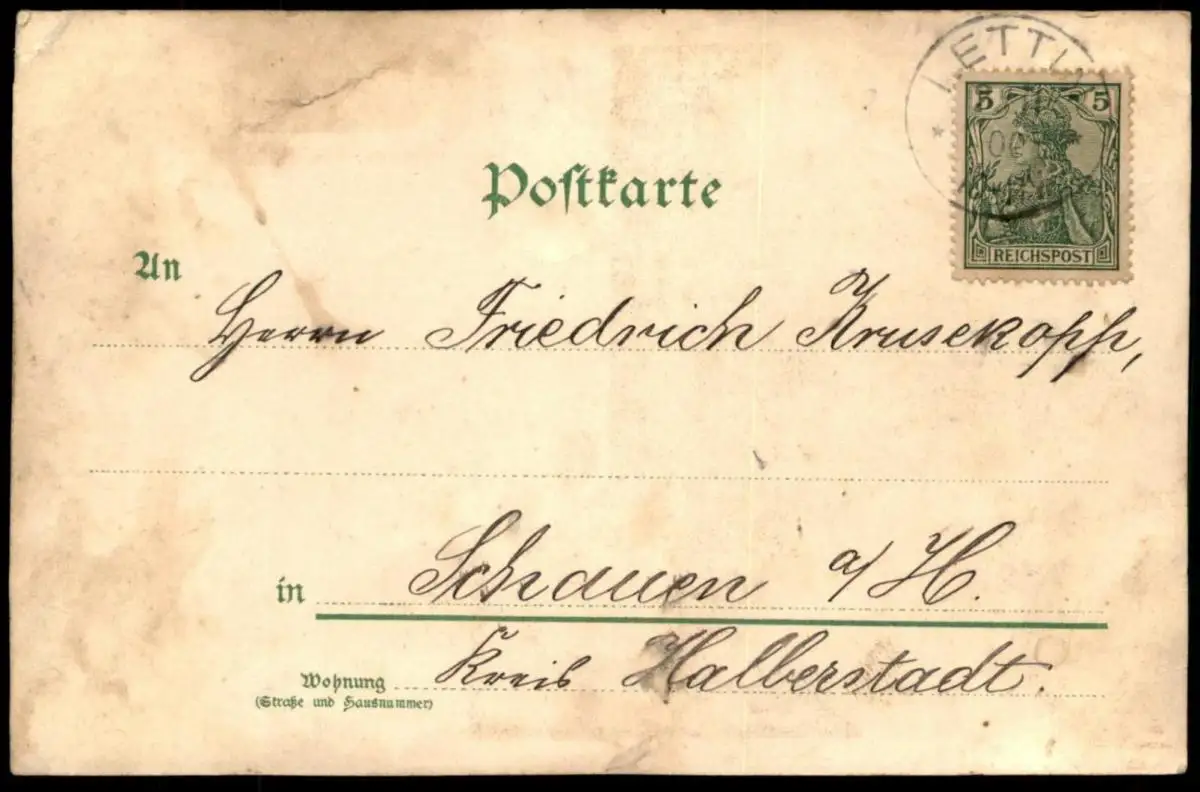 Gelaufen: xx.11.1900 mit Stempel Lettin nach Schauen Kreis Halberstadt