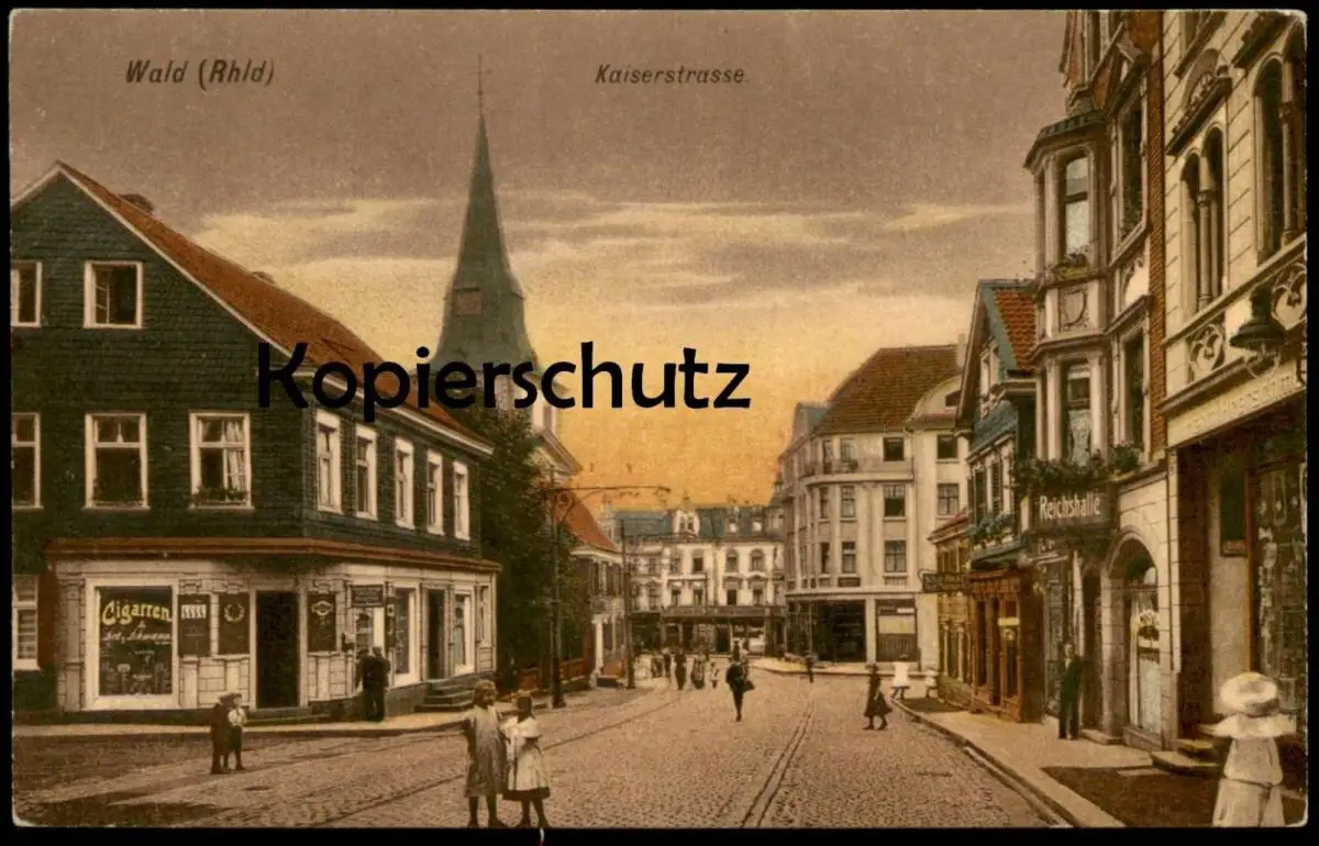 ALTE POSTKARTE WALD RHEINLAND KAISERSTRASSE MIT REICHSHALLE & CIGARREN-GESCHÄFT
