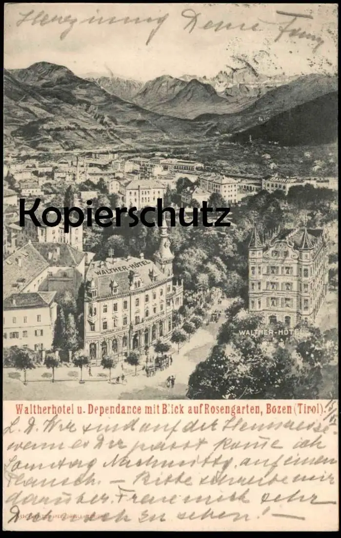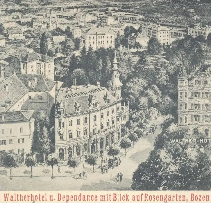 ALTE POSTKARTE WALTHER HOTEL & DEPENDANCE BOZEN TIROL Walther von der Vogelweide Bolzano Alto Adige Val Gardena Dolomiti