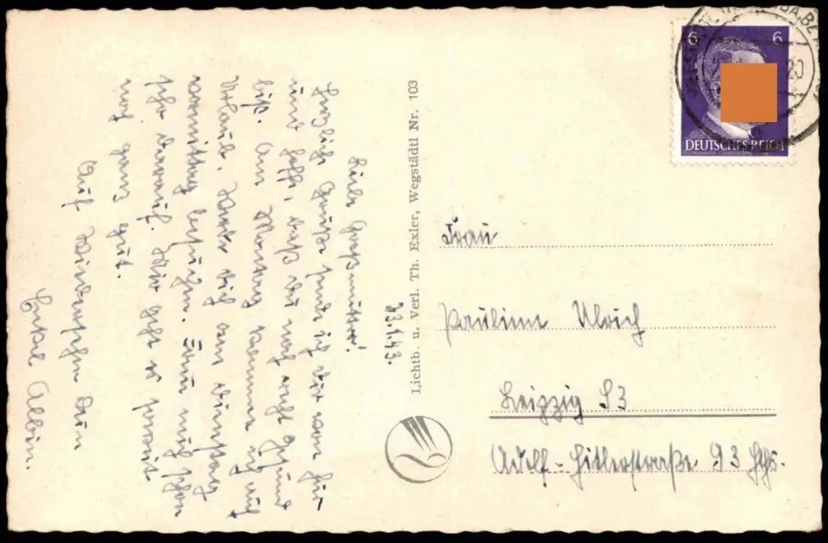 Verlag: Th. Exler, WegstädtlGelaufen: 23.01.1943 nach LeipzigErhaltung (s. Scan): gut - sehr gut / 917208