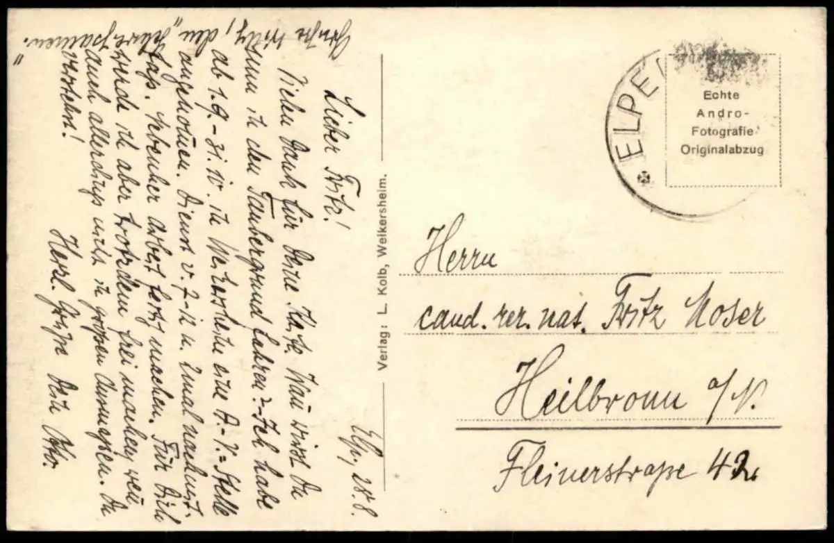 Gelaufen: 28.08.19xx mit Stempel Elpersheim nach HeilbronnErhaltung (s. Scan): gut - sehr gut / 916291
