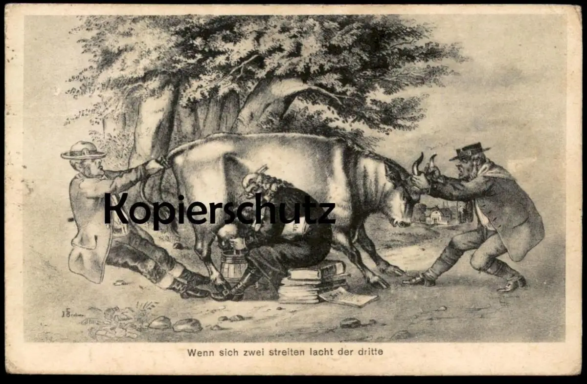ALTE POSTKARTE WENN SICH ZWEI STREITEN LACHT DER DRITTE ANWALD RECHTSANWALT OCHSE KUHVerlag: unbekannt
