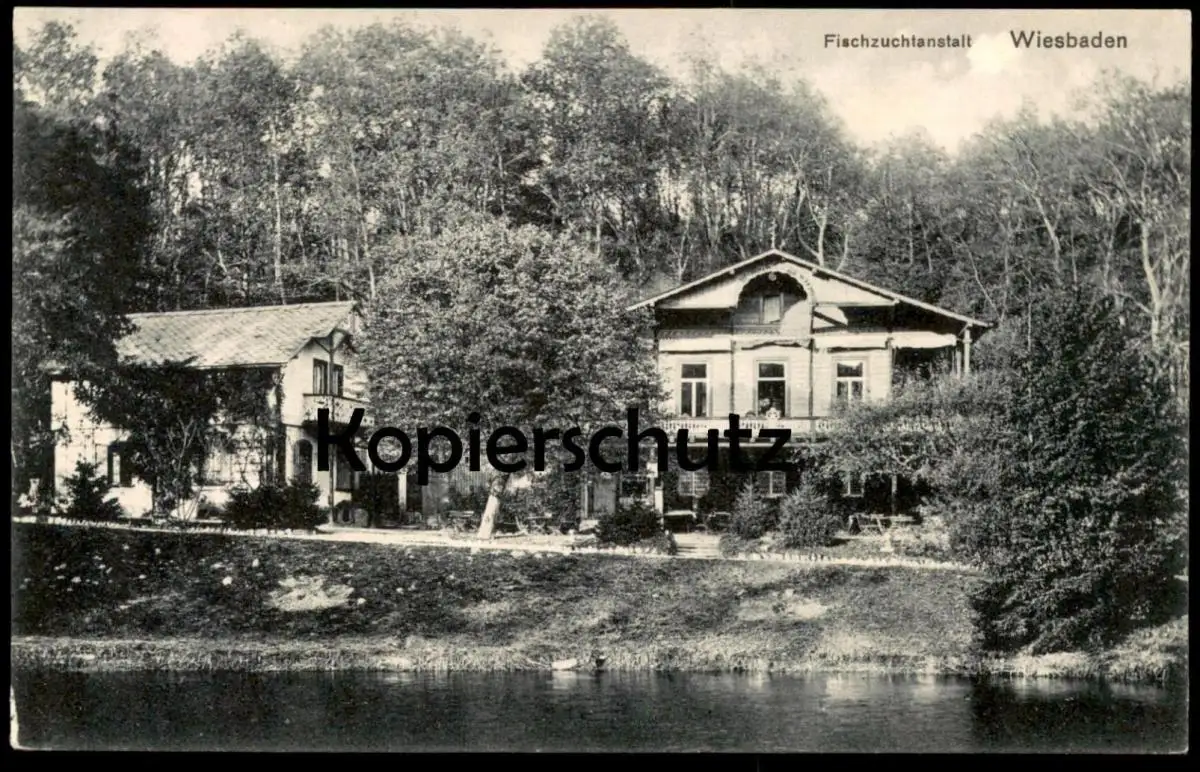 ALTE POSTKARTE WIESBADEN FISCHZUCHTANSTALT Fischzucht fish farm breeding pisciculture Fisch Ansichtskarte cpa postcard