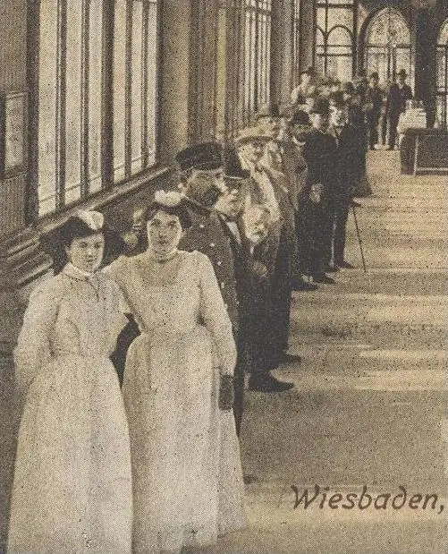 ALTE POSTKARTE WIESBADEN KOCHBRUNNEN INNERES interieur men women Uniform Hut Top Hat haute-forme Ansichtskarte postcard