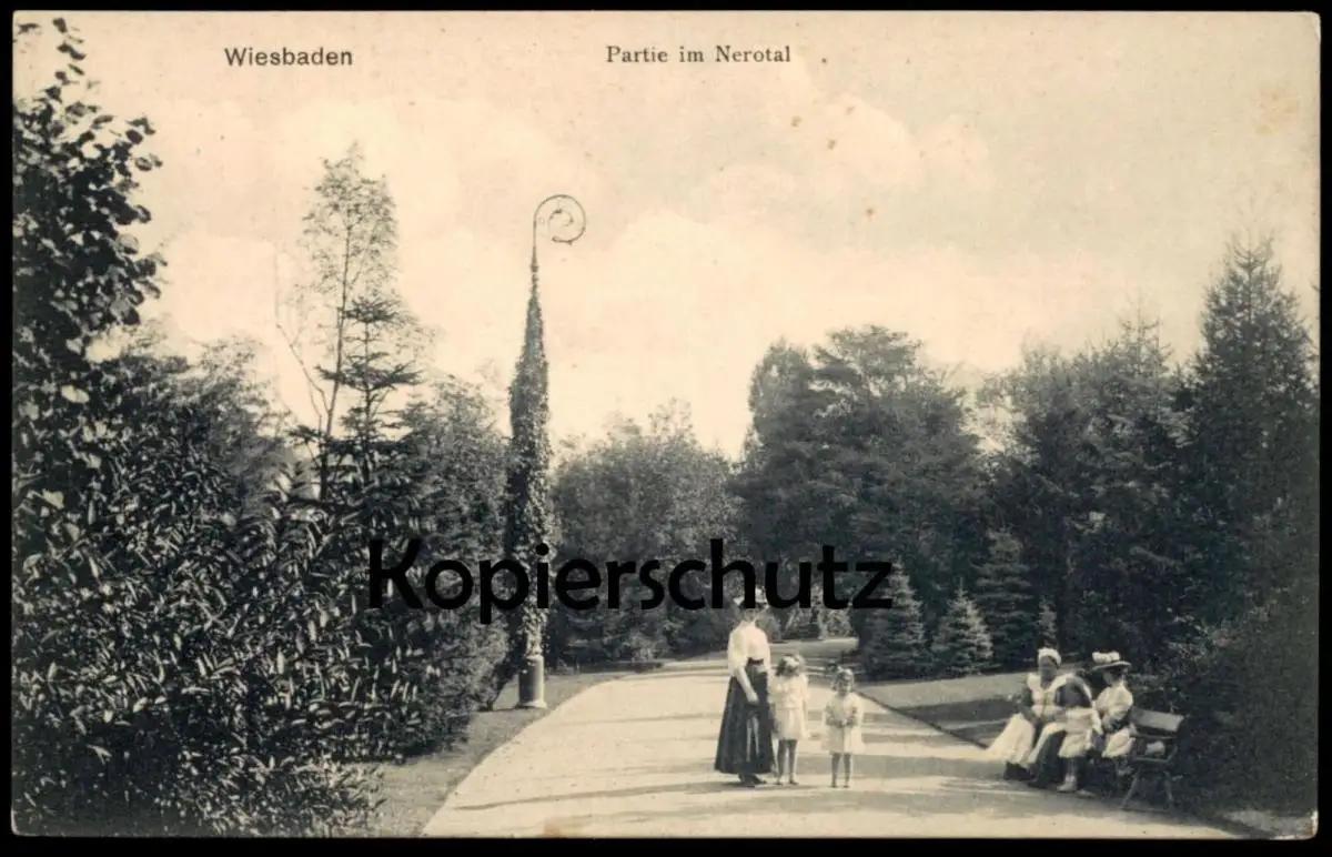 ALTE POSTKARTE WIESBADEN PARTIE IM NEROTAL FRAUEN UND KINDER Ansichtskarte AK cpa postcard