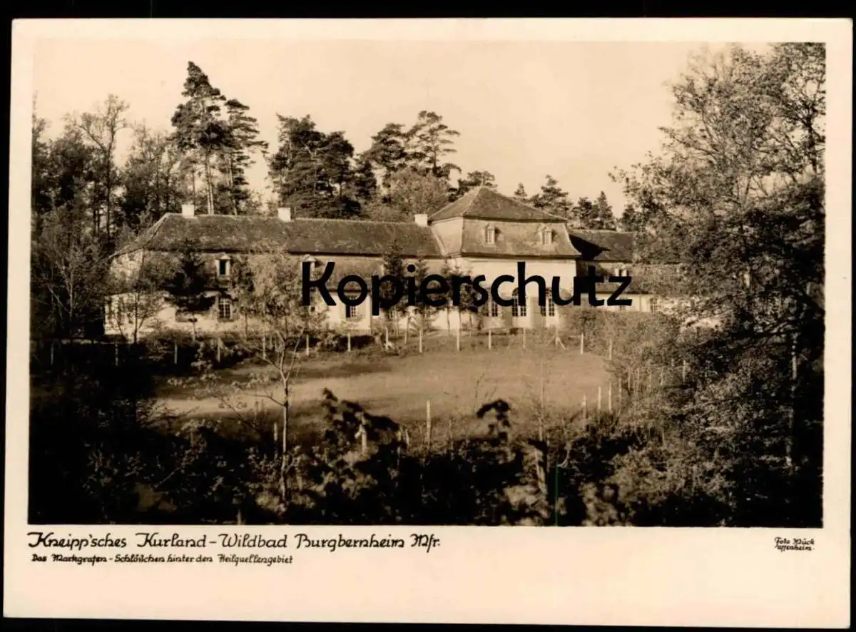 ALTE POSTKARTE WILDBAD BURGBERNHEIM MITTELFRANKEN KNEIPP´SCHES KURLAND DAS MARKGRAFEN-SCHLÖSSCHEN HINTER DEM HEILQUELLENGEBIETVerlag: Foto Mück, Uffenheim