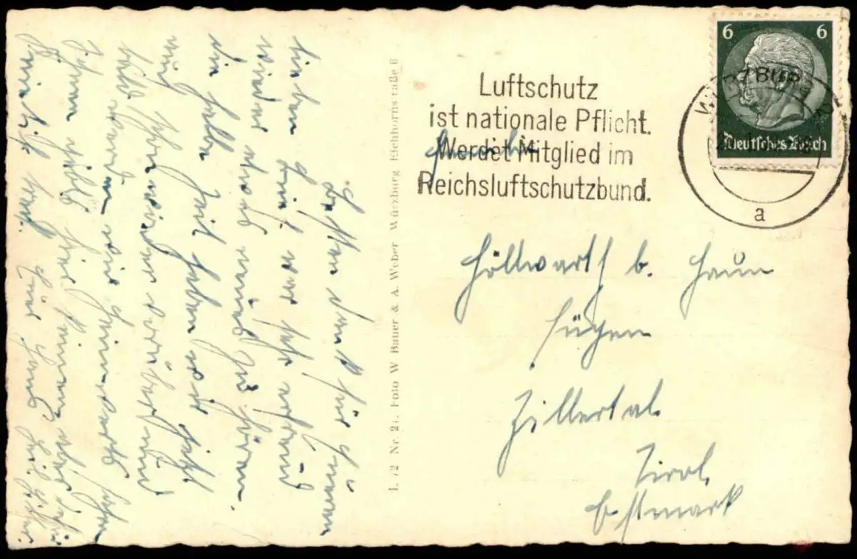 Gelaufen: 20.01.1938 mit Stempel Würzburg nach Fügen Zillertal