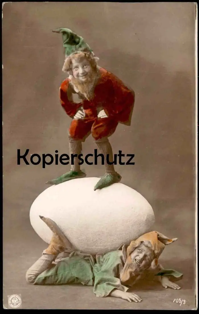 ALTE POSTKARTE ZWEI KINDER ALS ZWERGE MIT EI
