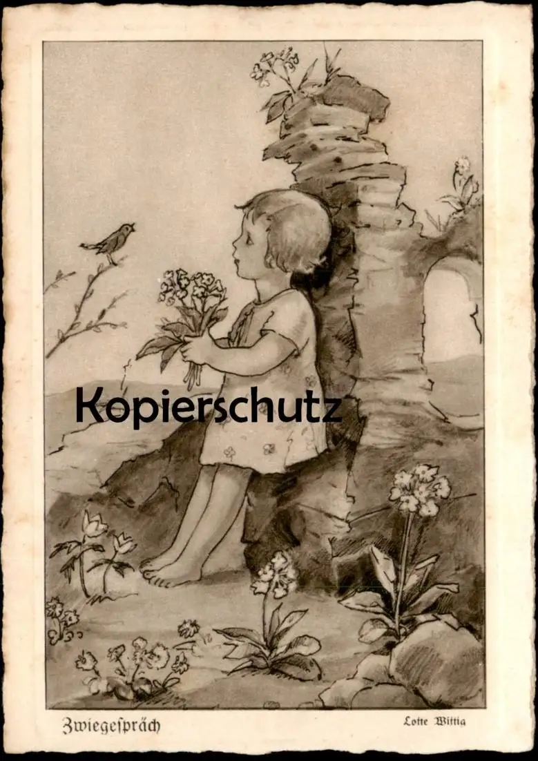 ALTE POSTKARTE ZWIEGESPRÄCH MÄDCHEN & VOGEL KIND 1931 LOTTE WITTIG child bird enfant Oldenburg-Wittig postcard cpa