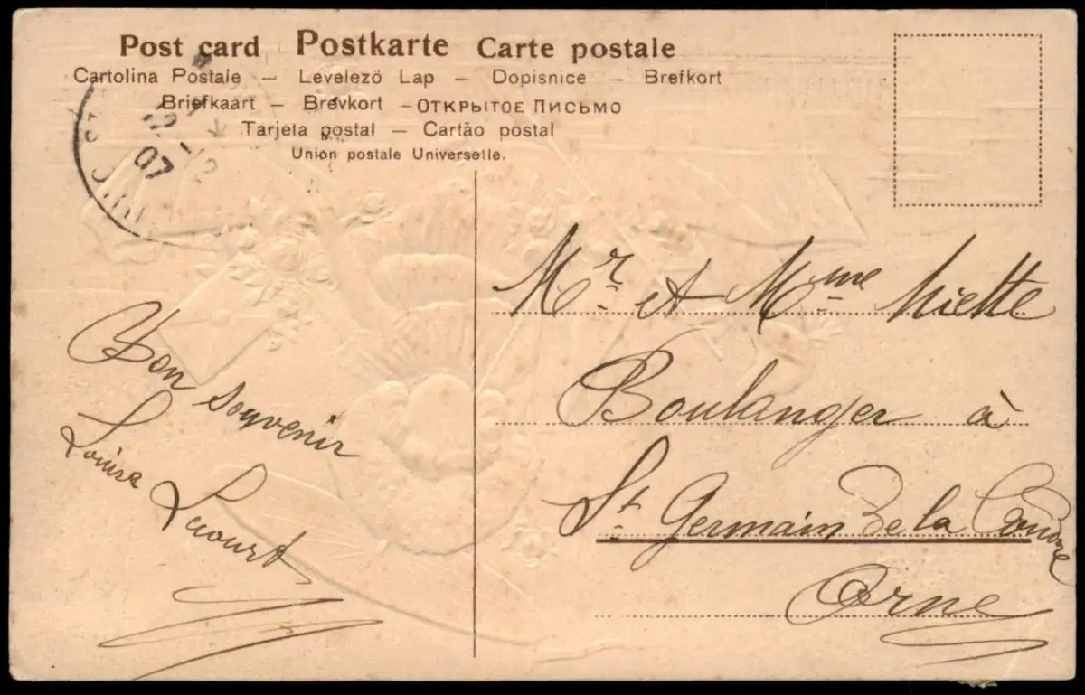 Gelaufen: 12.12.1907 mit Stempel Paris nach St. Germain de la CoudreErhaltung (s. Scan): gut / 915135