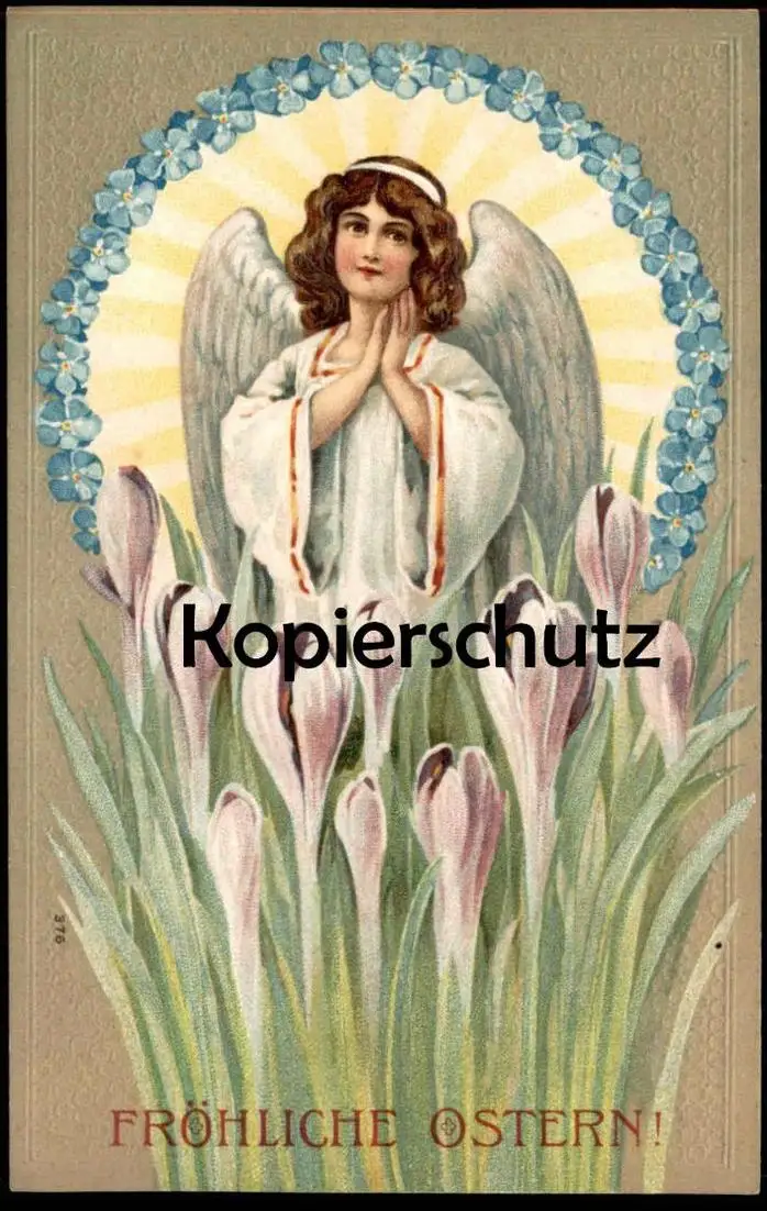 ALTE PRÄGE POSTKARTE FRÖHLICHE OSTERN ENGEL GEFALTETE HÄNDE KROKUSSE Mädchen angel ange easter paques postcard AK cpa