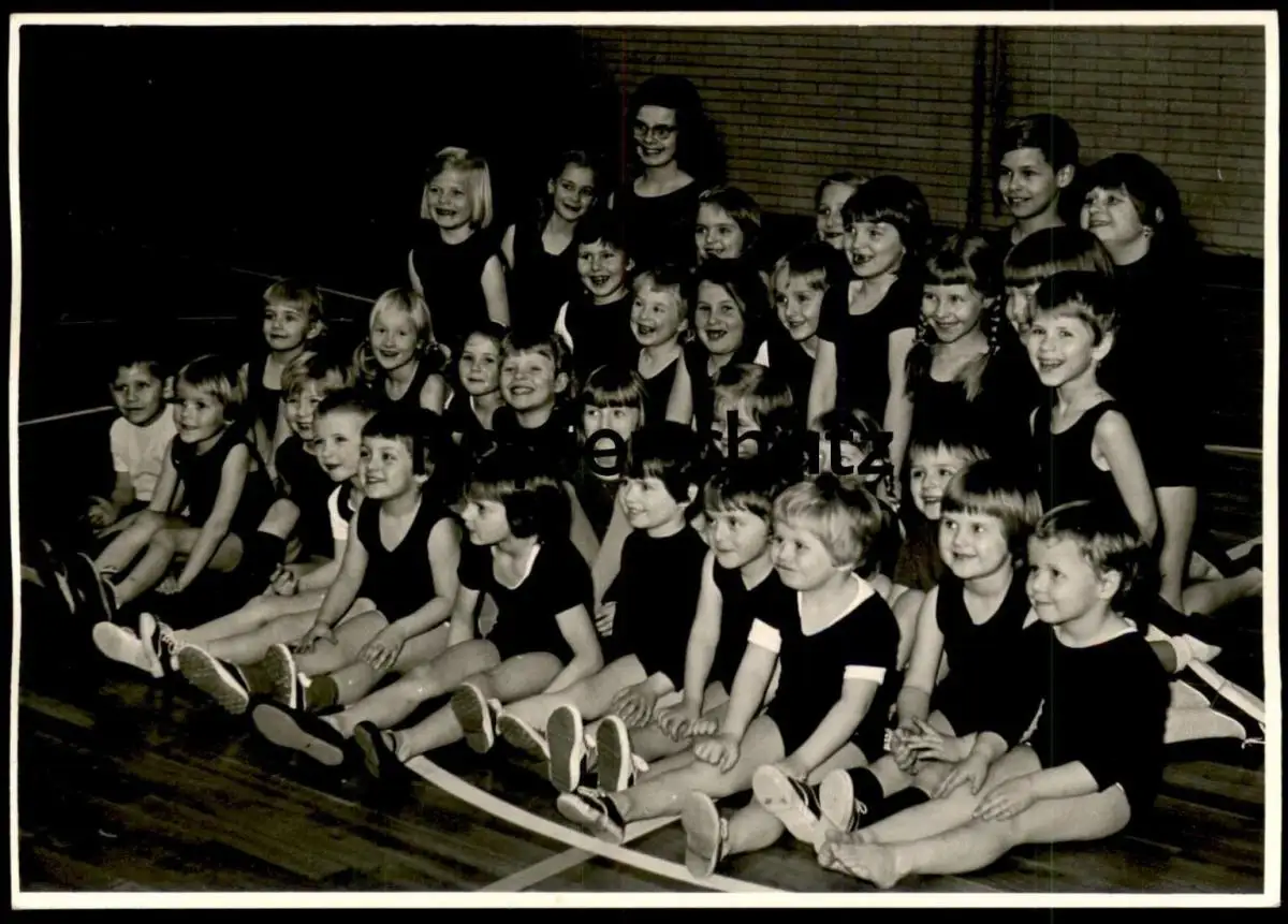 ALTES FOTO SCHULE KINDERGARTEN SPORT TURNEN SPORTUNTERRICHT 11x15 cmGelaufen: neinErhaltung (s. Scan): gut - mittel, rückseitig Abrieb durch kleine Albumspuren / 916893