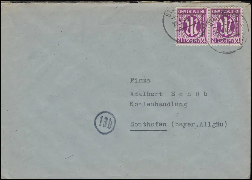AM-Post 2x 12 Pf. Paar MeF Fern-Brief STUTTGART 26.1.46 nach Sonthofen