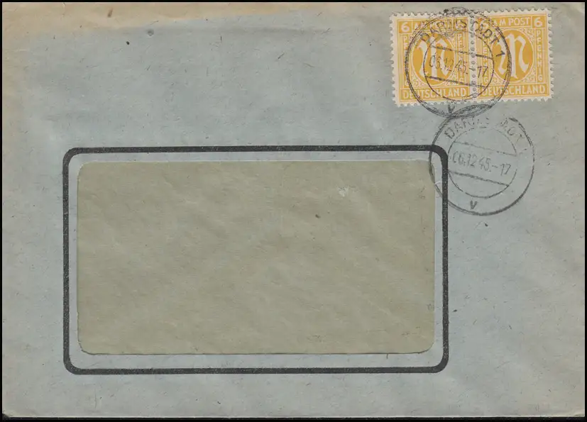 AM-Post 2x 6 Pf. MeF Fensterbrief DARMSTADT 1 v - 6.12.45