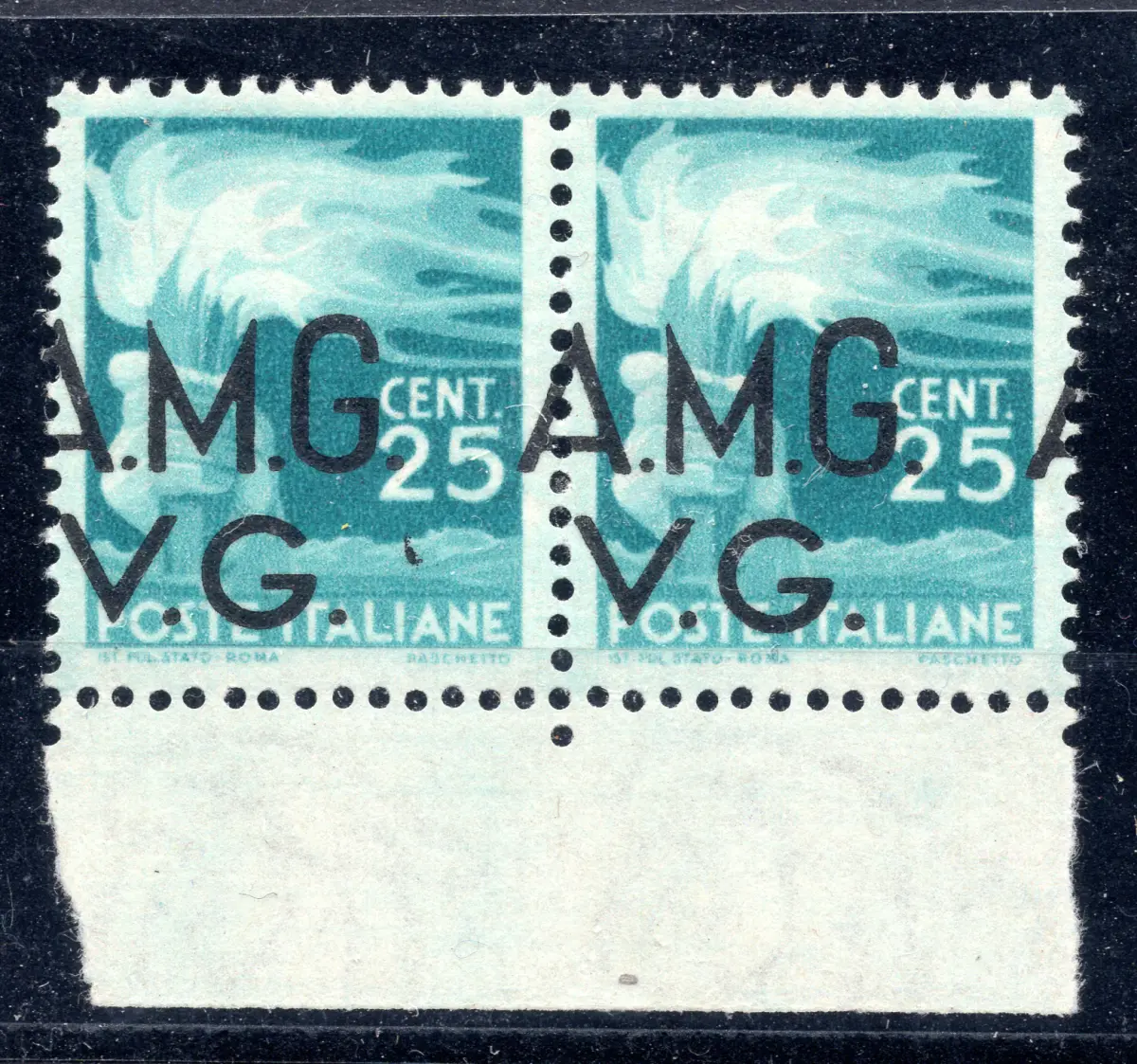 Vollgummi - AMG. Sehr guter Zustand. - Democratica Cent. 25 n. 13hk horizontales Paar mit stark nach links verschobenem Aufdruck - Ungewöhnliche Nr. 832/L