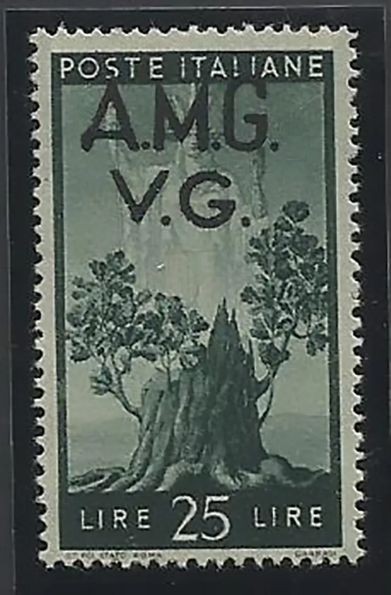Vollgummi - AMG. Sehr guter Zustand. - Democratica Lire 20 Nr. 20 mit stark nach oben verschobenem Aufdruck - nicht katalogisierte Nr. 20 969/5